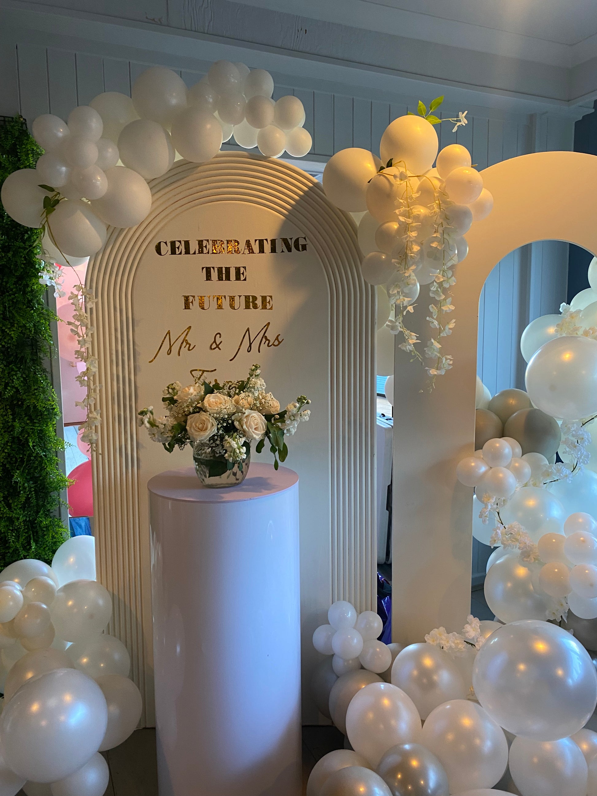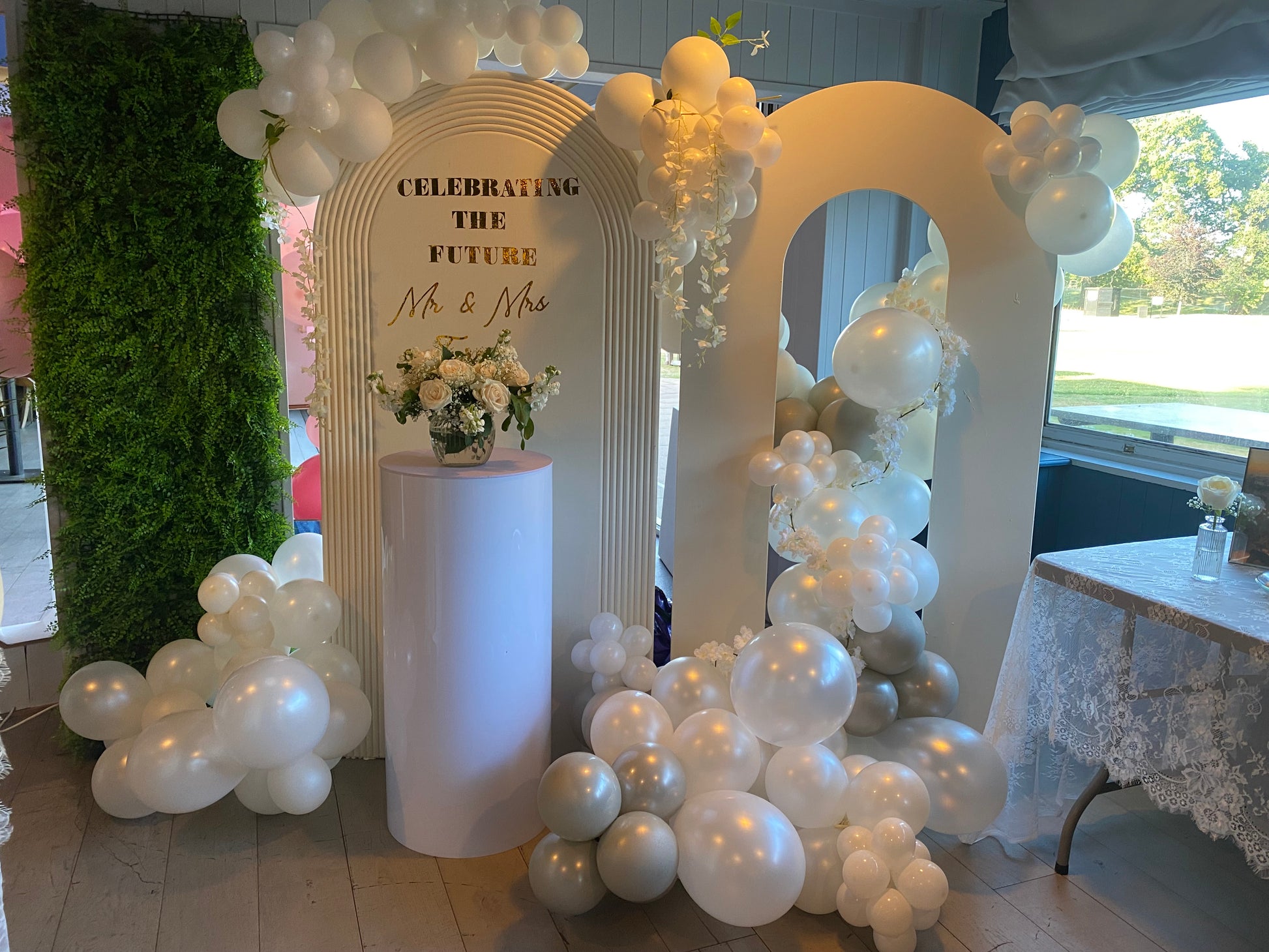 A beautiful, elegant balloon arch created for the future Mr. & Mrs. Turner. We bring your vision to life—no matter what you imagine, we can create it even better.